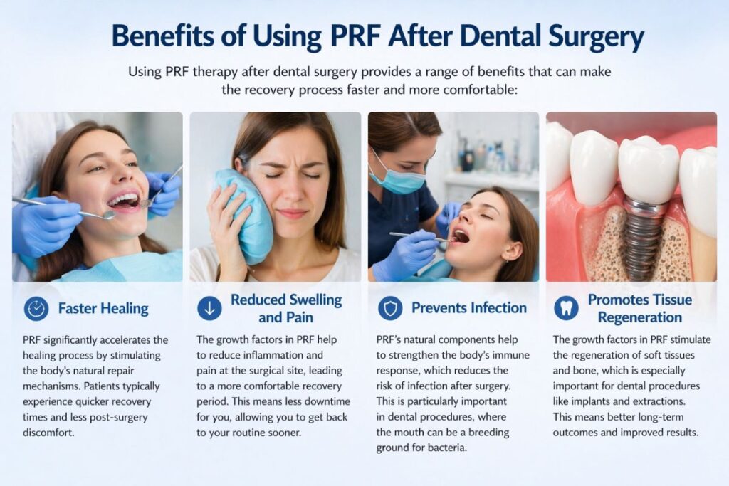 Using PRF therapy after dental surgery provides a range of benefits that can make the recovery process faster and more comfortable: